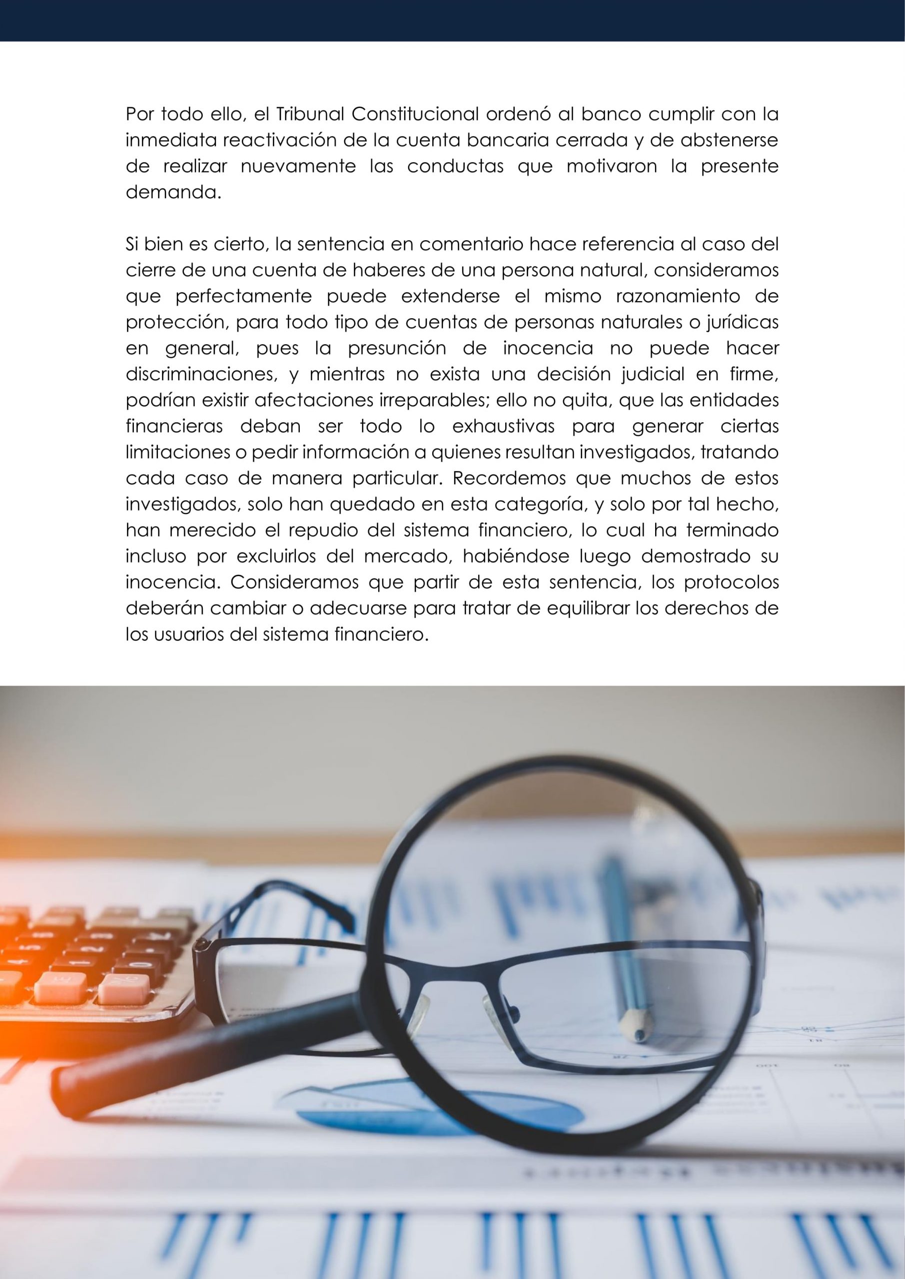 ES CONSTITUCIONAL EL CIERRE DE LAS CUENTAS BANCARIAS DE PERSONAS INVESTIGADAS POR EL DELITO DE LAVADO DE ACTIVOS